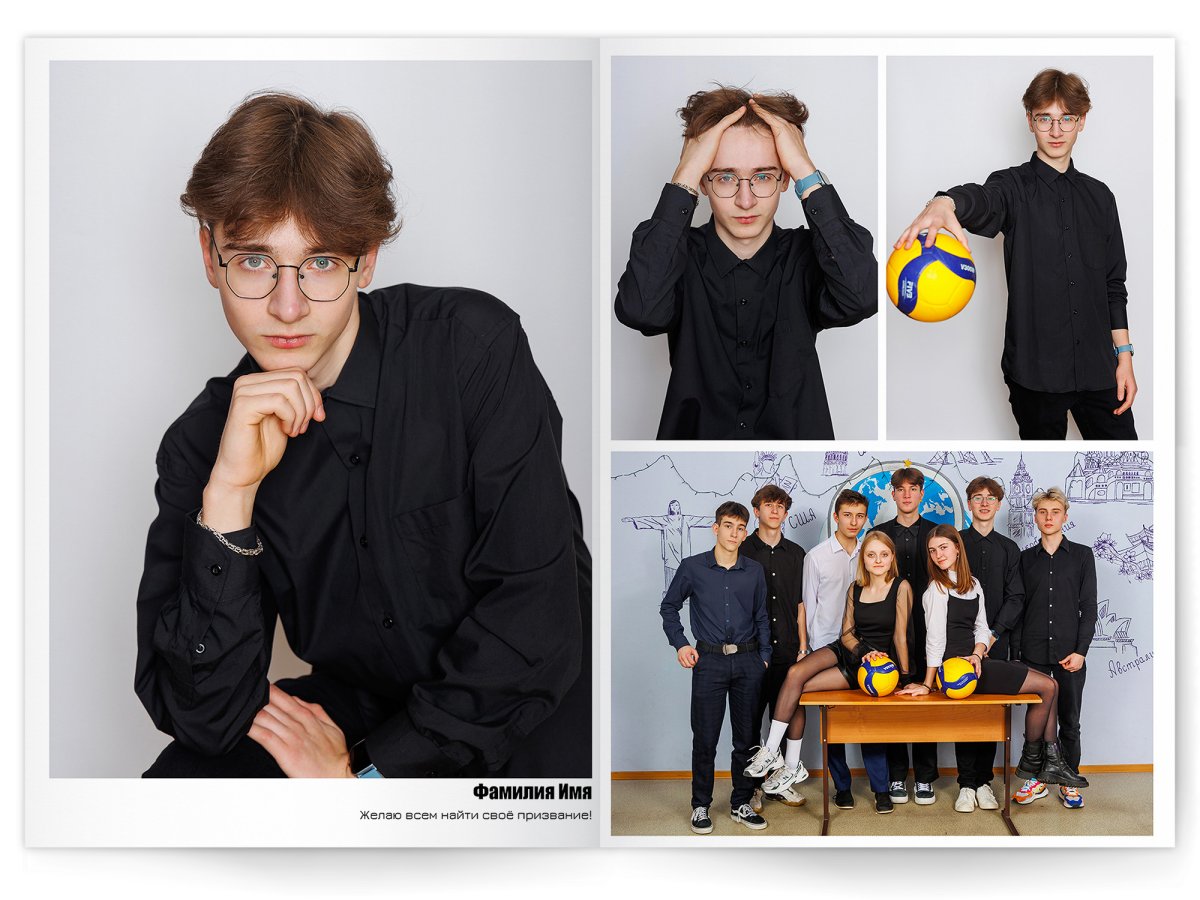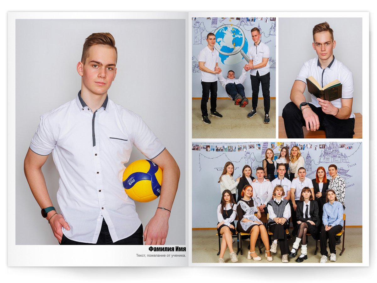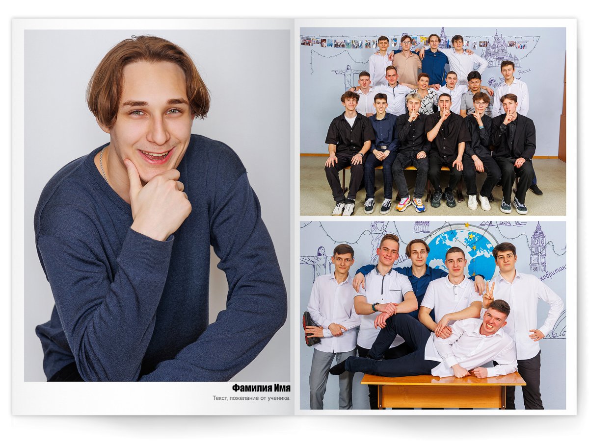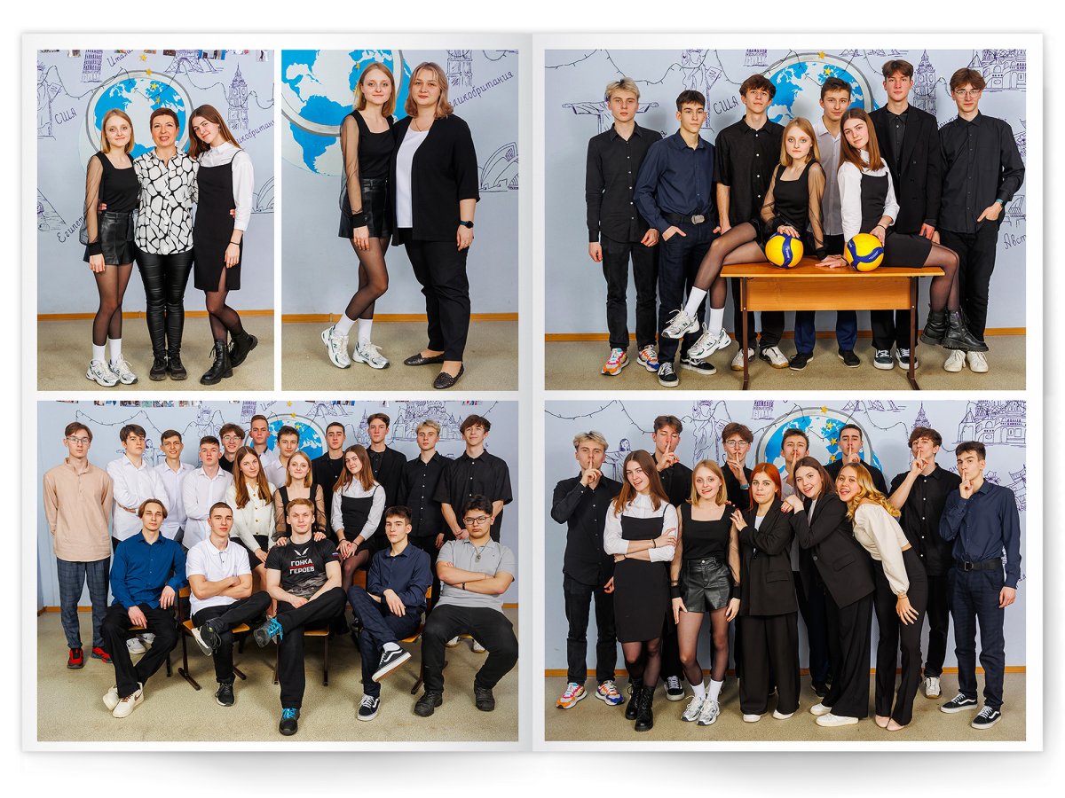 Можно добавить общее фото всего класса на второй разворот +350 ₽ (будет альбом на 2 разворота)