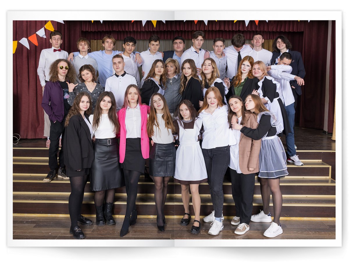 Можно добавить общее фото всего класса на второй разворот +350 ₽ (будет альбом на 2 разворота)
